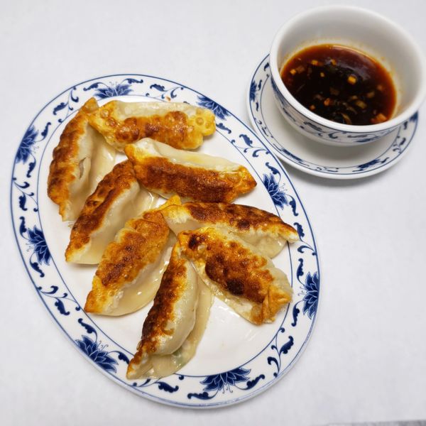 Seasoned ground pork with chopped vegetables wrapped in a thin layer of pan-fried dough